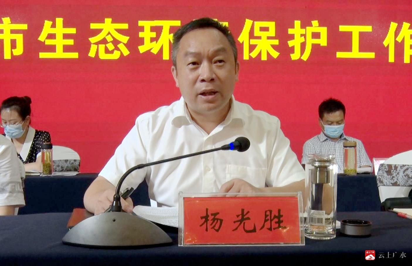 杨光胜指出,根据党中央、国务院统一部署,中央第三生态环境保护督察组已正式进驻湖北,开展为期30天的生态环保督查工作。广水市上下要深化思想认识,深刻理解配合做好中央环保督察工作的重大意义,以最高站位主动接受环保督察。开展生态环保督查是对广水市党员干部的“政治体检”,是对生态环保工作的“集中检阅”,是助推广水高质量发展的“重要契机”。相关部门要端正态度,以最实举措全力配合环保督察,坚决保障到位、坚决配合到位、坚决整改到位。要转变观念,以最大力度推进绿色转型发展,更加注重发挥生态环保的“倒逼”作用,促进经济社会发展全面绿色转型,不断擦亮广水高质量发展的生态底色。要围绕“防”做加法,切实守牢绿色低碳发展、自然生态安全“两条底线”,推动广水市生态环境美起来、靓起来;要围绕“治”做减法,聚焦生态保护中的突出问题,集中优势兵力、动员各方力量,群策群力、群防群治,一个战役一个战役打、一个问题一个问题治,补短板、强弱项、促提升,不断改善环境质量,增强人民群众生态环境的获得感、幸福感、安全感;要围绕“转”做乘法,集中力量实施一批重大生态环境领域项目,不断发展壮大风光发电和新兴低碳产业,加快优化调整产业结构、交通运输结构和用地结构,推动广水市经济社会发展全面绿色转型,走好绿色低碳、高质量发展道路。