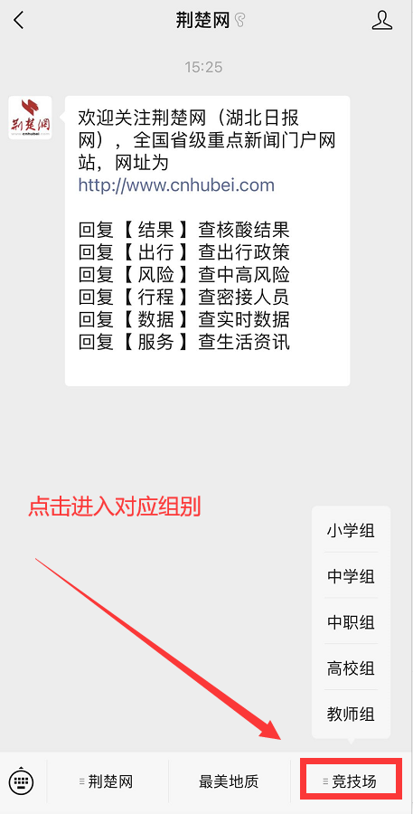 关注荆楚网之后,点击菜单栏“ 竞技场 ”,进入对应专区。