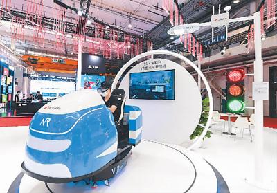 参观者在2021世界5G大会展览现场体验5G+车联网VR虚拟驾驶。新华社记者 任 超摄