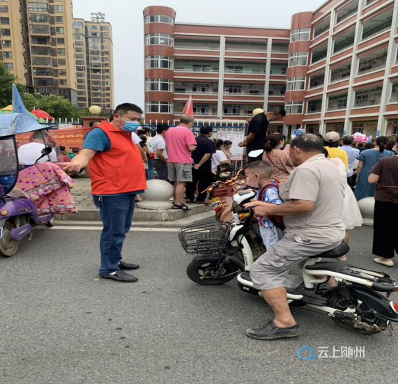 “来来,这位家长,请将您的车子靠边停好,谢谢配合。”社区志愿者对学校周边车辆乱停乱放行为进行劝导,文明停车,践行文明礼仪,提升文明素养,筑牢校园安全防线。