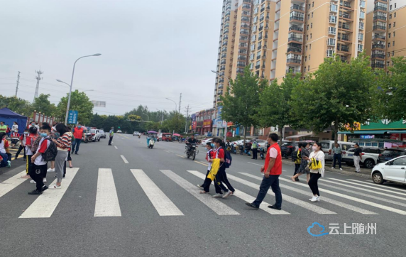 “同学们,请走斑马线,不要拥挤,依次排队过马路,注意来往车辆…….”熊家社区志愿者引导来往车辆避开学生通道,并提醒学生有序进出校园,在回家路上注意安全,平安到家。