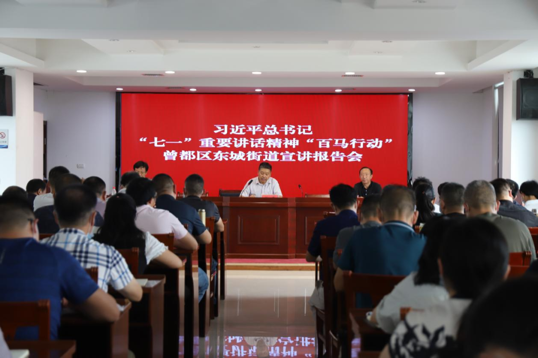 东城街道要求,各基层党组织要以这次宣讲报告会为契机,迅速全面掀起学习贯彻习近平总书记“七一”重要讲话精神热潮,要学懂弄通做实习近平新时代中国特色社会主义思想,增强“四个意识”,坚定“四个自信”,做到“两个维护”。要充分运用区域内的电子屏、宣传栏进行全方位宣传,采取人民群众喜闻乐见的形式,推动习近平总书记“七一”重要讲话精神进企业、进校园、进小区、进楼栋,深入学习贯彻习近平总书记“七一”重要讲话精神,丰富拓展党史学习教育内涵,推动党史学习教育往深里走、往实里走。