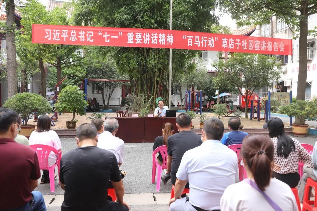 “中国共产党成立以来的一百年,是中国人民根本改变历史命运的一百年,是中华民族走向伟大复兴的一百年,是中国为全人类发展作出卓越贡献的一百年。”9月8日,习近平总书记“七一”重要讲话精神“白马行动”宣讲报告会走进西城街道草店子社区,省委讲师团百马行动成员、湖北经济学院马克思主义学院副教授王海涛为社区居民讲述了一场接地气的课程。
