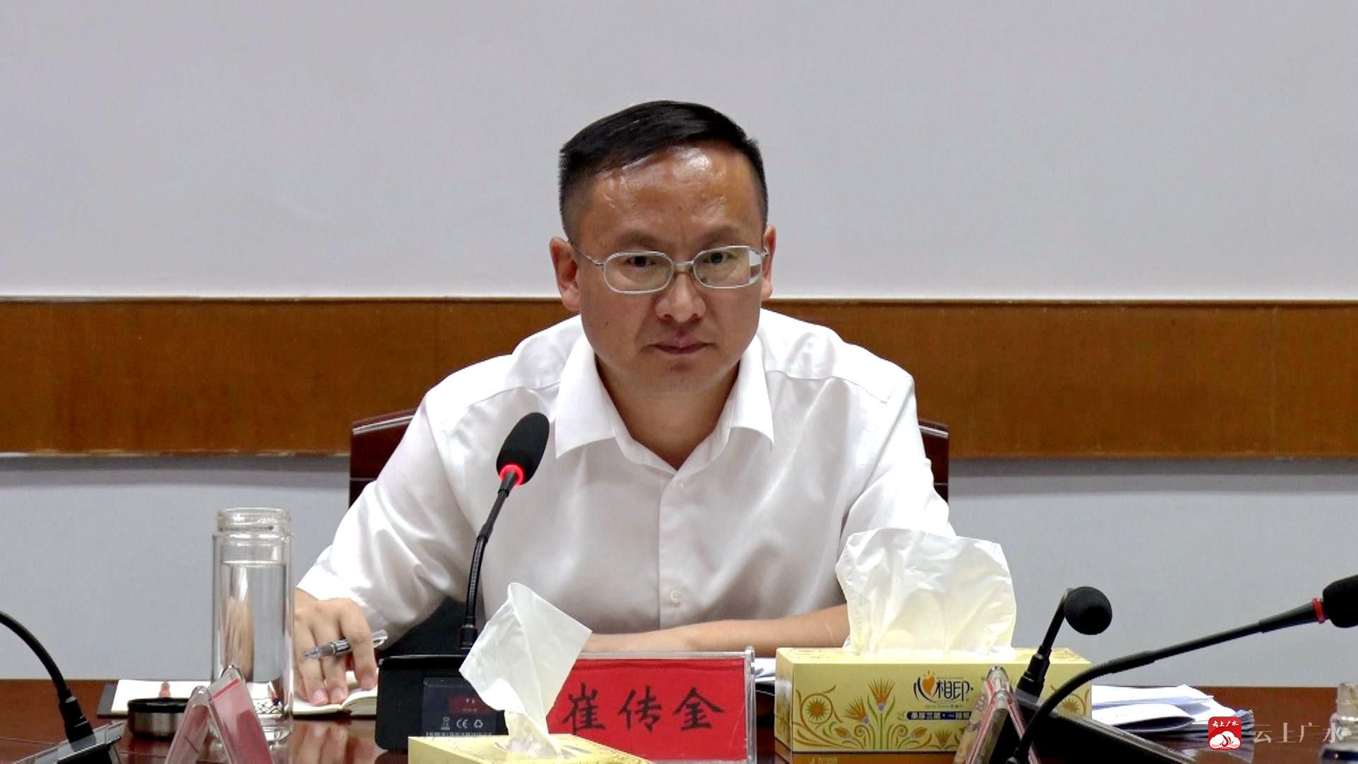 崔传金要求,要全力以赴抓好中央环保督察工作,及时整改问题,切实改善广水市生态环境;要做好遍访企业工作,协调解决困难问题,以商招商,亲商爱商,让企业切实感受到温暖;要抓好产业链“链长制”运行工作,不断发展壮大广水市六大产业;要持续加强经济运行调度,强化招商引资和固定资产投资等工作;要加快城市建设步伐,保障城市建设项目顺利开展,提升城市品味;要抓好人民公司创建和乡村振兴各项工作,进一步巩固脱贫成果;要加强财政金融工作,壮大财政规模,做足做好四本预算;要加强常态化疫情防控工作,确保符合接种条件的人员应接尽接;要抓牢安全生产工作,紧绷防汛之弦,坚决防范森林火灾;要狠抓社会稳定工作,扎实做好信访维稳,确保社会安定有序。