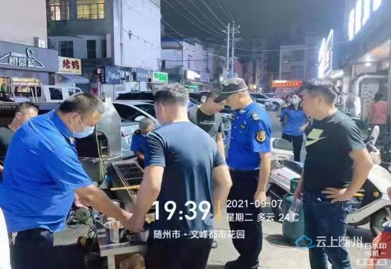 从9月7日晚起,曾都区城市管理执法局每晚出动40余名执法队员,配合各街道、城南新区综合执法中心对城区迎宾大道、交通大道、文峰西街、汉东路、舜井大道、沿河大道、解放西路、擂鼓墩大道等13条重点路段夜市烧烤集中区的占道经营、油烟污染,乱摆乱放等行为进行集中整治。整治过程中,执法人员对违规占道经营行为予以取缔,对便民服务点区域进行规范,并要求各经营业主安装并正常使用油烟净化设施。每晚的整治活动持续到10点左右,截止目前,共暂扣违规占道烧烤炉4台,违规占道桌椅130余件,取缔占道经营摊点20余处。