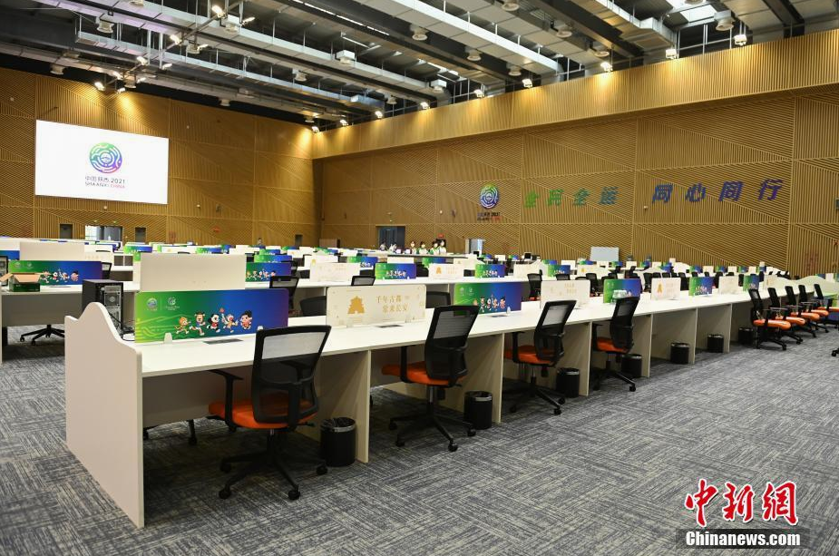 9月14日,位于陕西西安的全运会主媒体中心内的媒体工作间。中华人民共和国第十四届运动会将于15日在陕西西安开幕。 中新社记者 安源 摄
