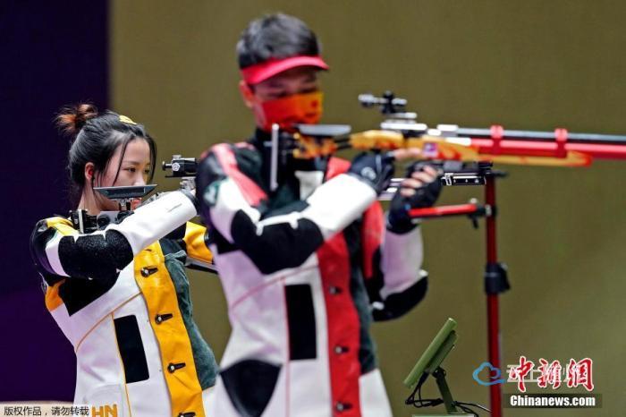 资料图:7月27日,在东京奥运会10米气步枪混合团体金牌战中,中国组合杨倩/杨皓然摘得金牌。这是中国体育代表团本届奥运会的第9金,杨倩成为了中国体坛首位00后奥运双金得主。