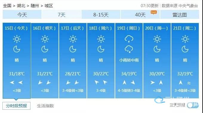 本周,随州还是以晴天为主