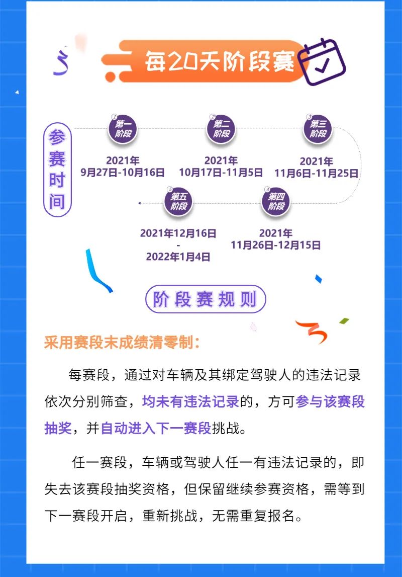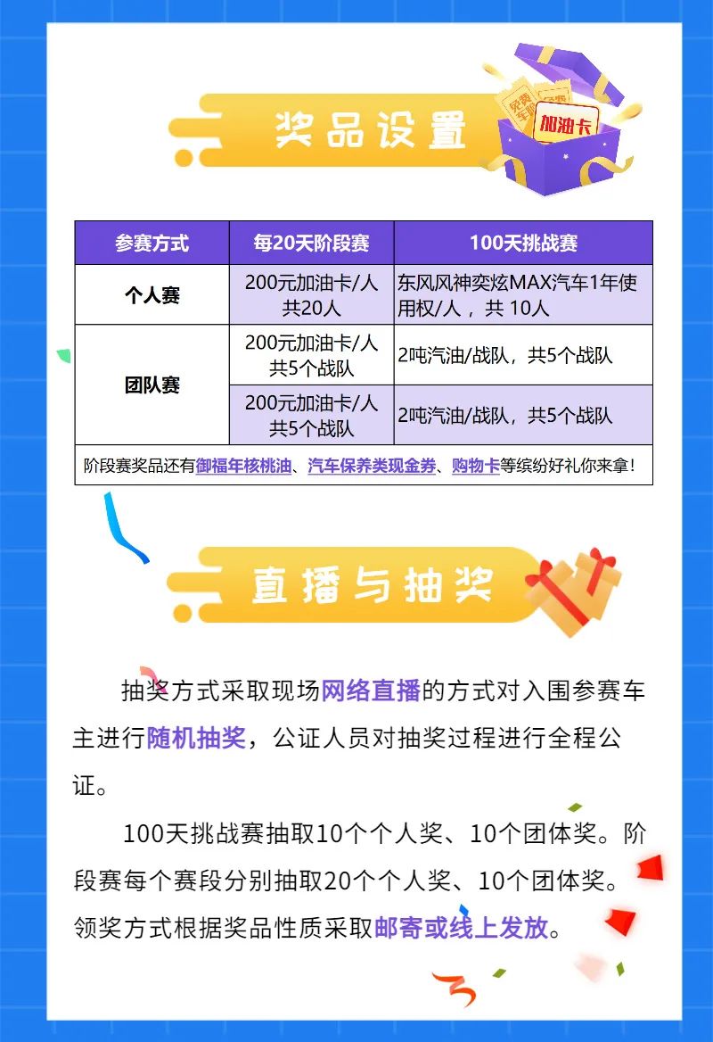 想要获得奕炫MAX一年使用权吗?想要参与瓜分20吨汽油吗?想要就来参赛吧“百日零违法”挑战赛今日开启 缤纷好礼个个是王炸 个人赛和团体赛同时参加 奖励还能再叠加 2021年9月15日至26日报名时间内 每天将在后台随机抽取200位参赛车主 每人送出一份御福年核桃油 还在等什么?快来报名吧!具体参赛规则立即奉上!