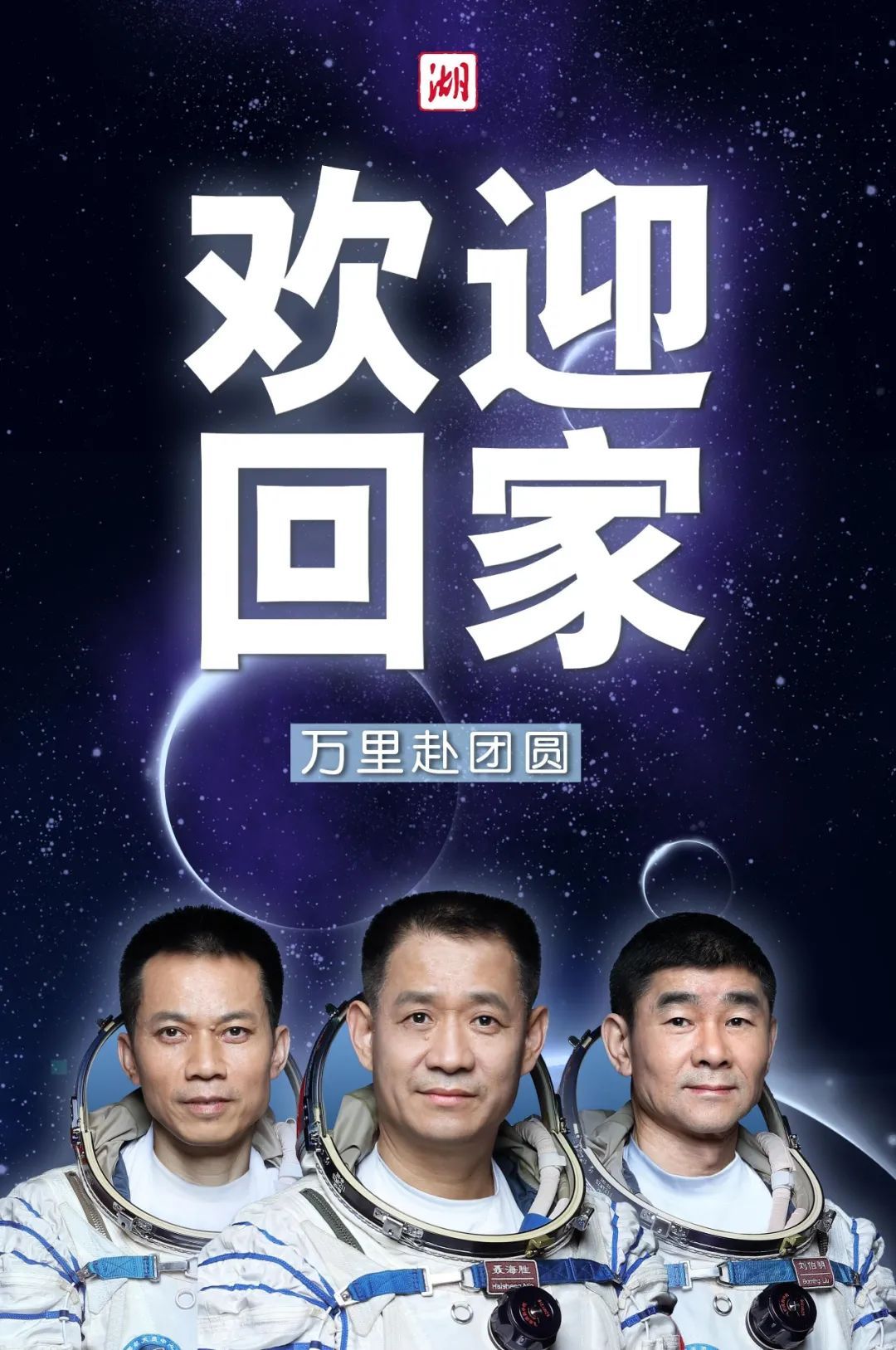 航天员聂海胜、刘伯明、汤洪波欢迎你们回家!