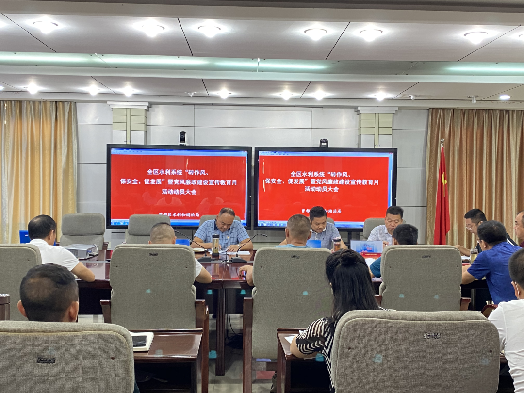 9月17日,曾都区水利和湖泊局组织召开水利系统“转作风、保安全、促发展”暨党风廉政建设宣传教育月活动动员大会。