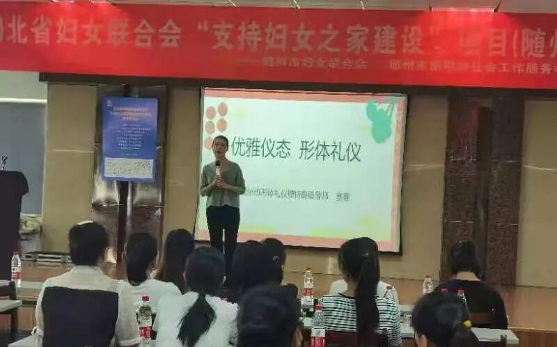 家庭教育指导师许桂芳和罗俊清分别就女性素质提升、幸福家庭建设进行宣讲。形体礼仪指导师现场指导大家进行形体礼仪训练。