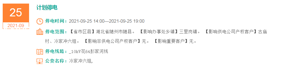 停电时间:2021-09-25 14:00—2021-09-25 17:00