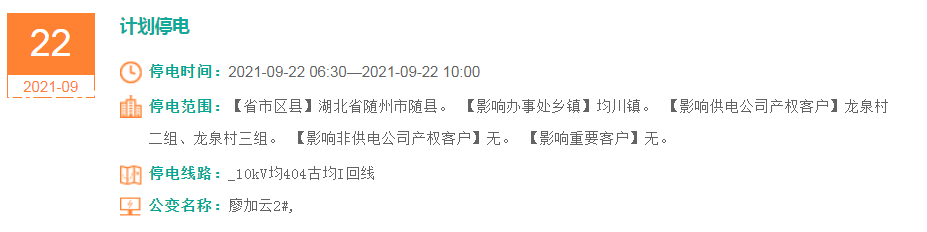 停电时间:2021-09-22 08:00—2021-09-22 12:30