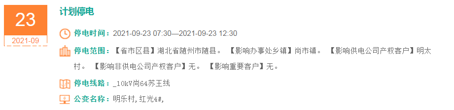停电时间:2021-09-23 15:00—2021-09-23 19:00