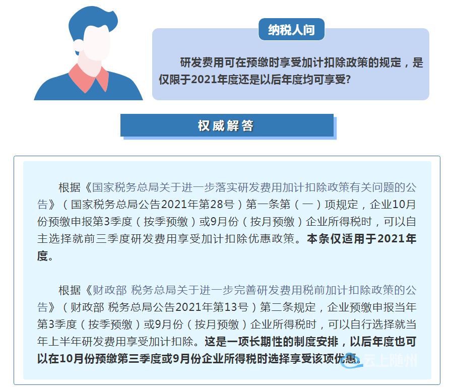 近日,国家税务总局发布《关于进一步落实研发费用加计扣除政策有关问题的公告》(国家税务总局公告2021年第28号),明确了关于2021年度享受研发费用加计扣除政策问题等。中国税务报新媒体收到了很多相关咨询,根据国家税务总局12366纳税服务平台的相关问答,我们整理了网友最关心的几个问题,一起来看看吧。