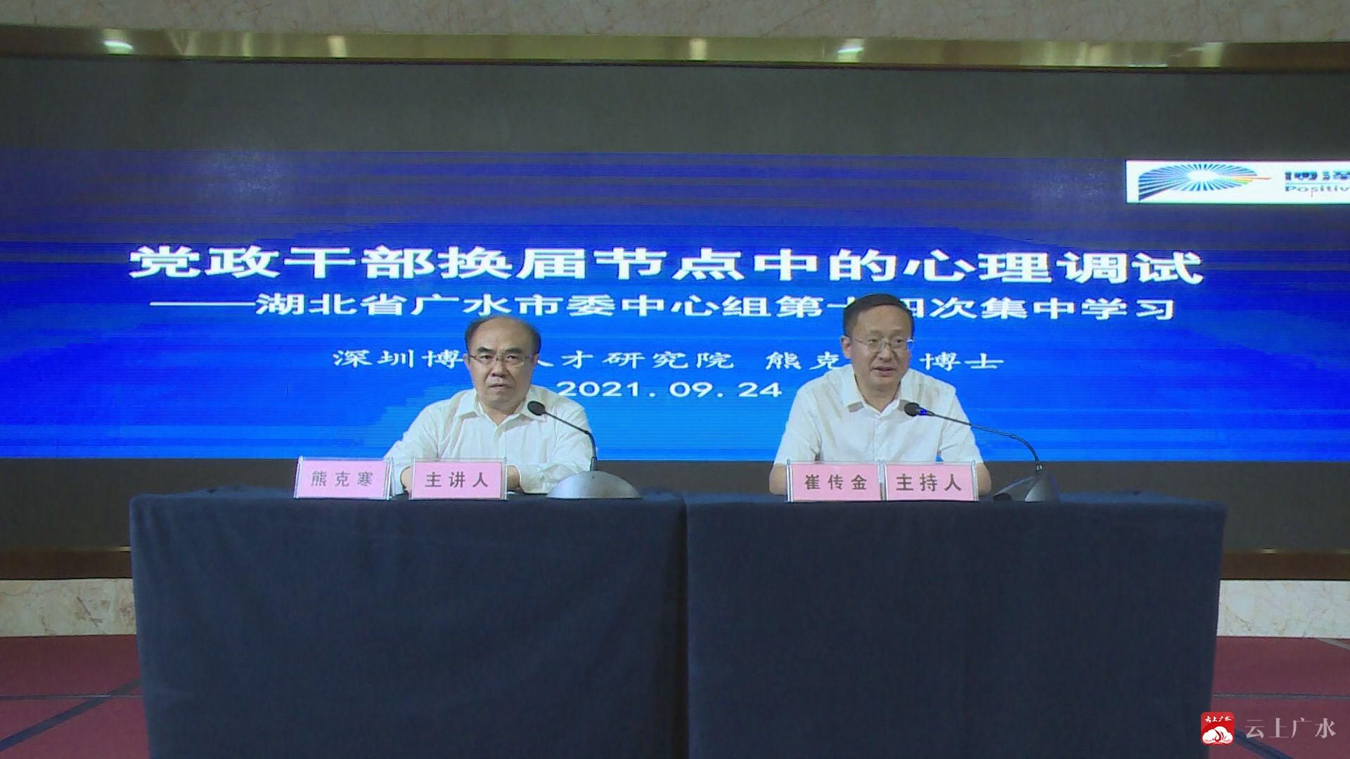 9月24日,广水市委中心组第十四次集中学习(扩大)会议召开,邀请中南财经政法大学教授、博士生导师、法学博士方世荣、中国公务员心理健康综合服务平台总设计师、北京大学心理学博士熊克寒,为大家作《法治政府建设实施纲要(2021-2025)》和《行政心理压力管理》专题讲座。