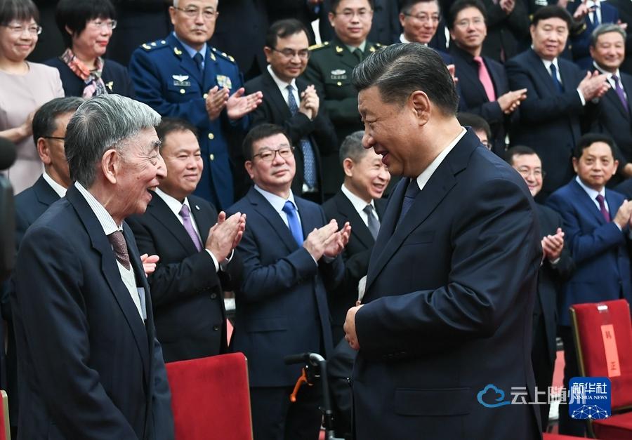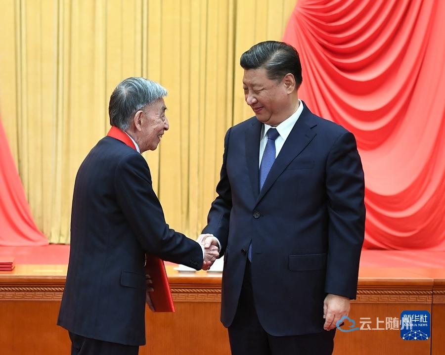 11月3日,2020年度国家科学技术奖励大会在北京人民大会堂隆重举行。中共中央总书记、国家主席、中央军委主席习近平向获得2020年度国家最高科学技术奖的中国航空工业集团有限公司顾诵芬院士颁奖。新华社记者 庞兴雷 摄