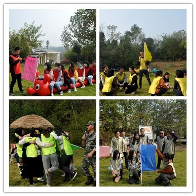 户外拓展环节,在教练的指导下,大家9人成组组建小团队,相继开展“找零钱”“多足蜈蚣”“信任传递”“激情节拍”等团队PK活动,大家默契配合,齐心协力,赛出风格,赛出友谊。