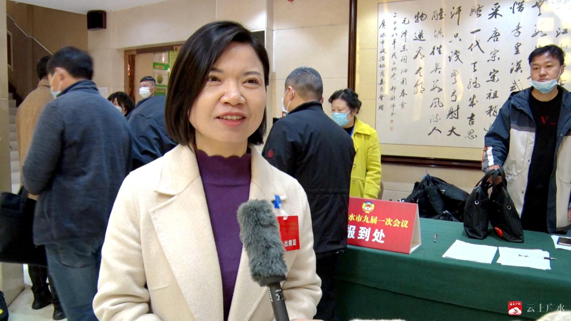【同期声】政协委员 邱娟娟:很高兴作为一名教育工作者、侨眷的代表参加此次政协大会,心中非常高兴,非常激动,非常荣幸,相信这次大会的成功举办一定能为广水的发展助力,为提升广水的幸福指数加分,最后预祝大会圆满成功。