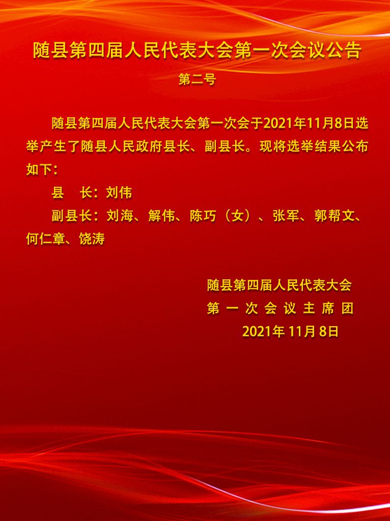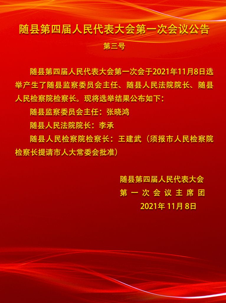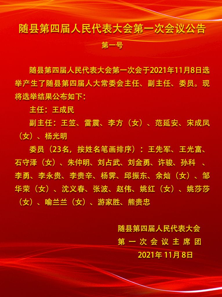 随县第四届人民代表大会第一次会议公告