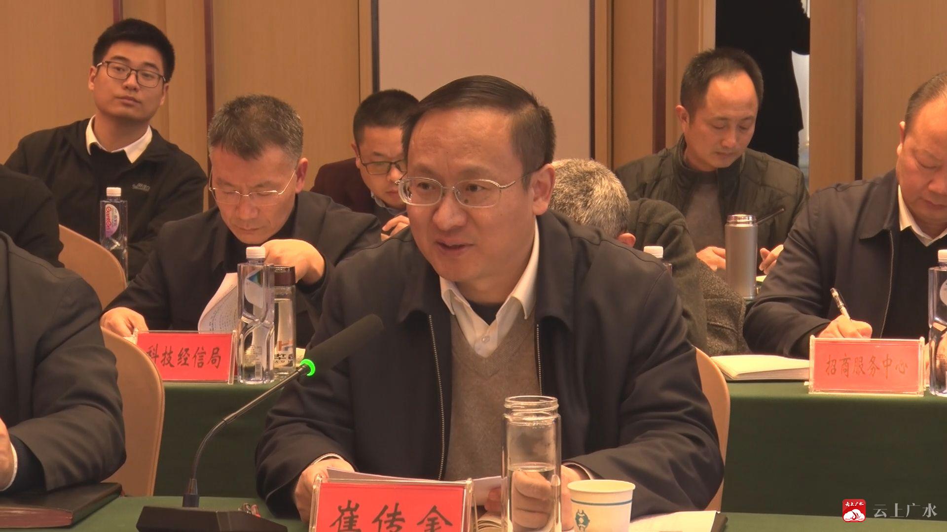 广水市委书记杨光胜,市长崔传金,市政协主席何庆海,市委常委、市委办公室主任柯学明,副市长吴军出席招商推介会,吴军主持推介会。