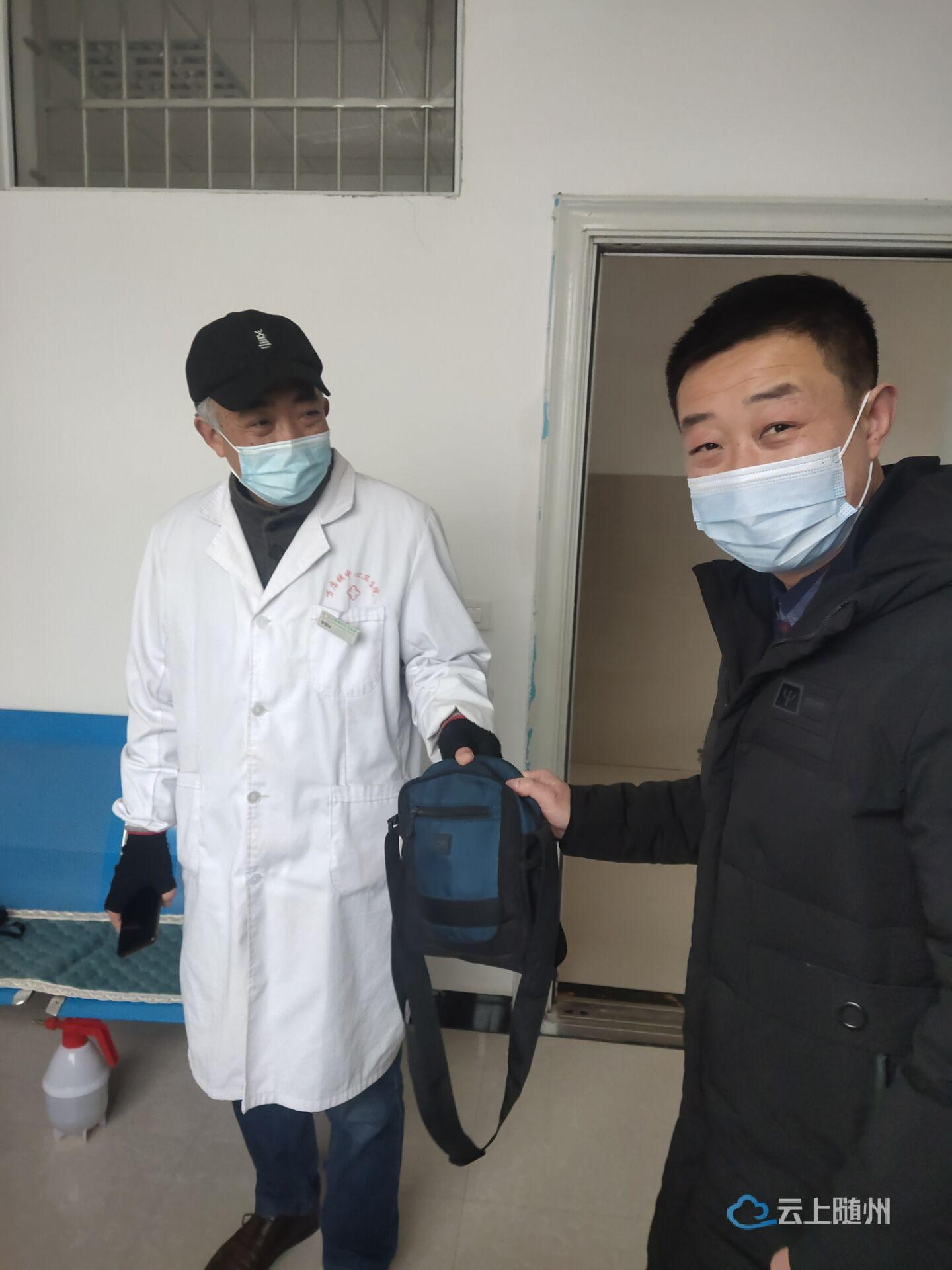 2022年1月6日下午4点左右,曾都区万店镇中心卫生院门诊医生李国铭焦急地拿着一个蓝黑色相间的小布包来到院办公室。李医生说他下午一直比较忙,等忙好了发现诊断床上有一只蓝黑色的小布包,他也记不清楚小布包的主人是哪个,本来想打开看看里面有没有包主人的相关信息,可是打开发现除了一大匝人民币和几盒药膏,没有任何其他的东西,于是他赶紧来到办公室将布包交给了值班领导閣先红,并叮嘱閣先红院长尽快找到失主以免失主着急。