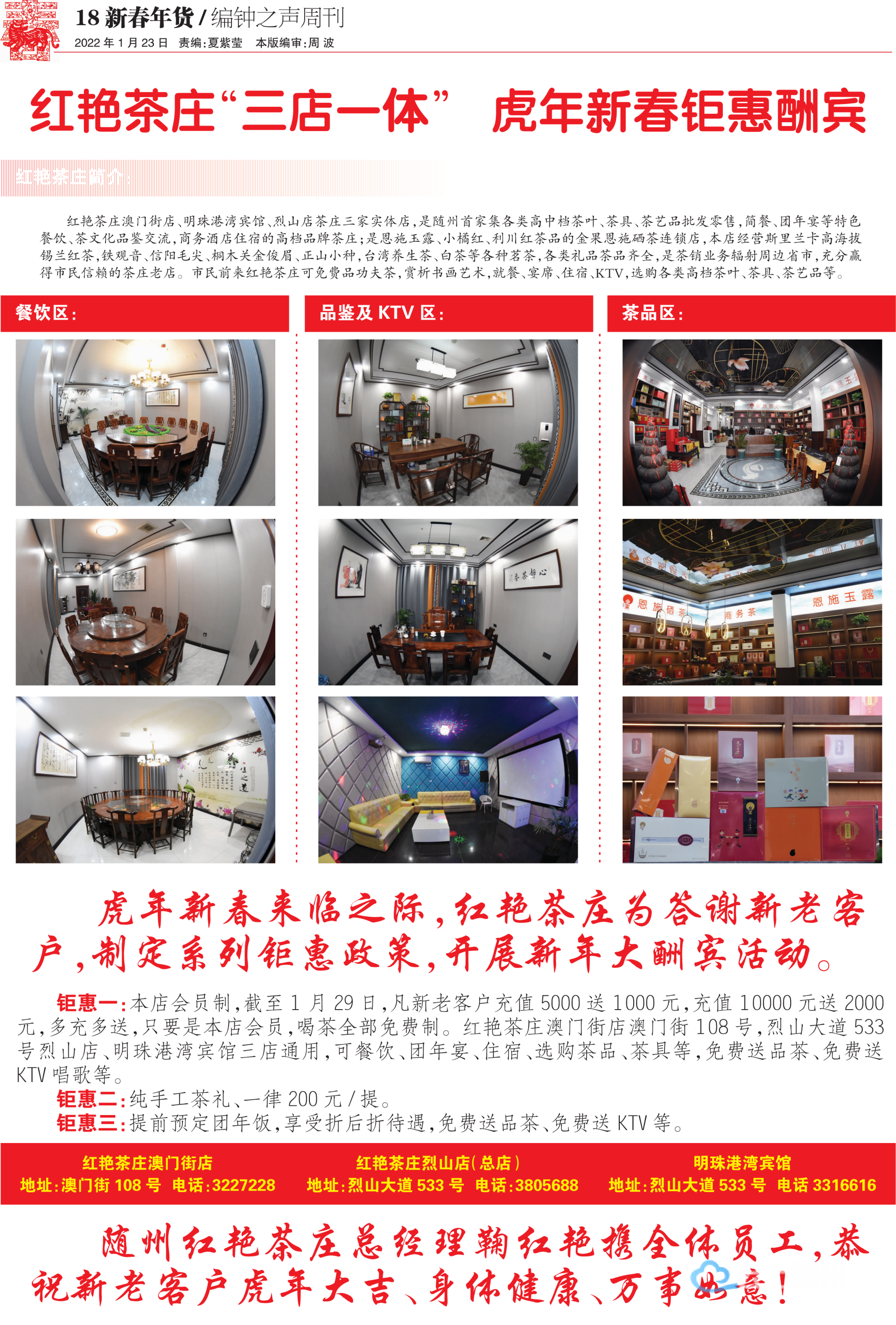 红艳茶庄“三店一体”,虎年新春钜惠酬宾