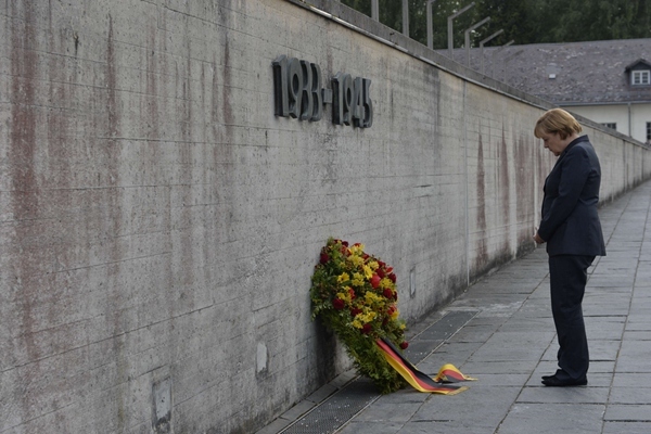 2013年8月20日,德国南部巴伐利亚州,德国总理默克尔造访达豪纳粹集中营,并向死难者敬献花圈。
