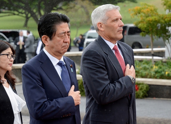 2016年12月26日,美国夏威夷火奴鲁鲁,日本首相安倍晋三访问美国太平洋国家纪念公墓。