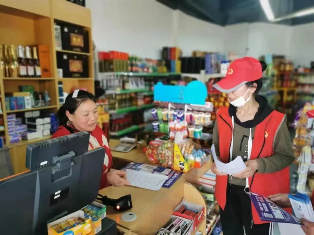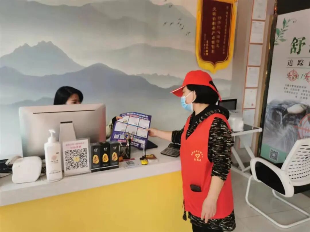 “不轻信陌生人来电的威胁、哄骗;不向任何陌生人、陌生账户转账汇款……”志愿者走进一家家店铺,向店铺老板与店员宣讲防诈骗“注意事项”。
