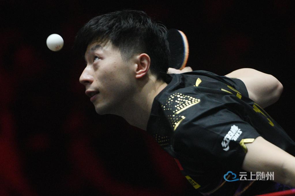3月17日,马龙在比赛中发球。新华社发 (邓智炜摄)