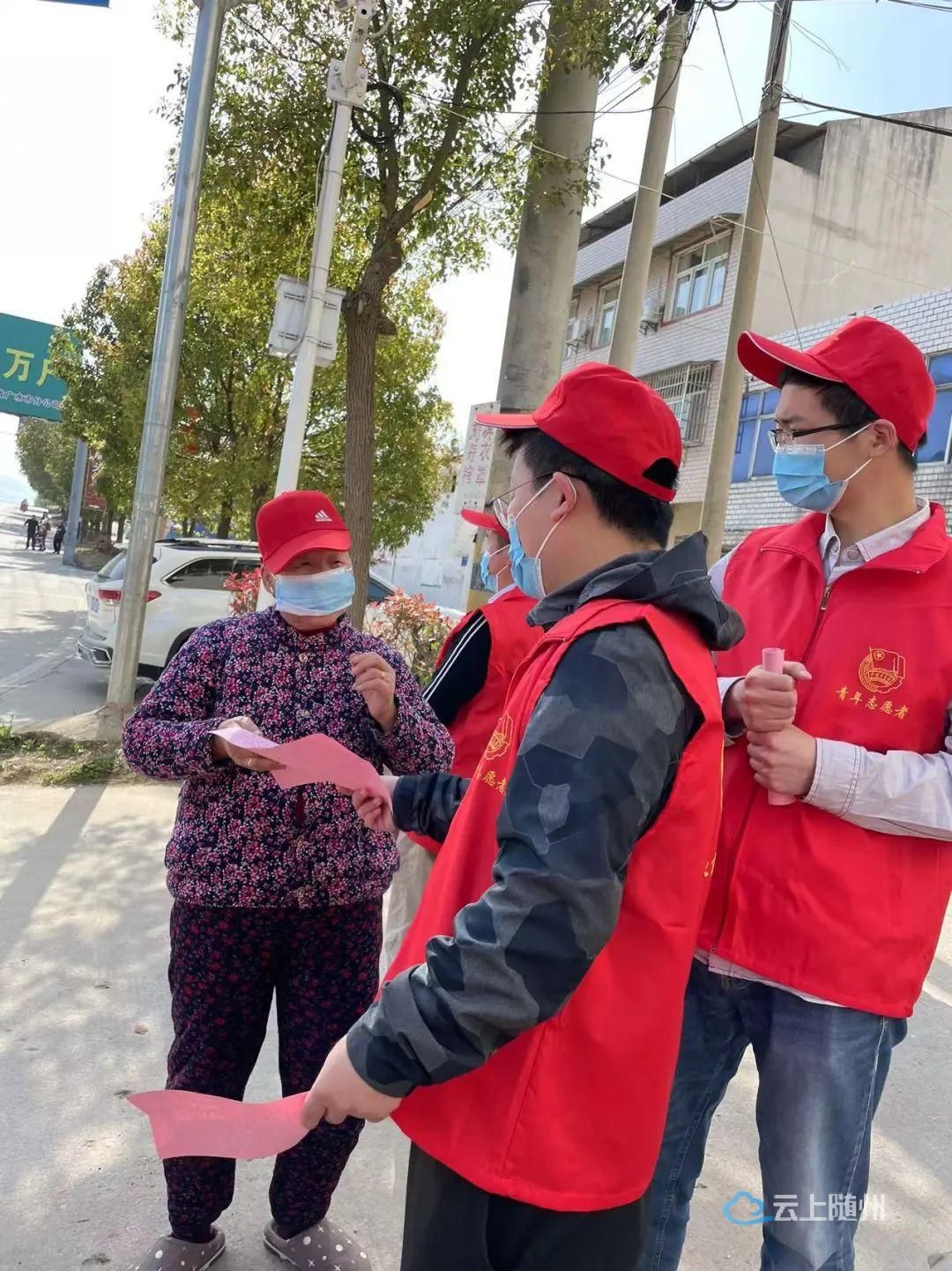 厉山镇团委组织青年志愿者参与返乡人员摸排、转运密接人员等志愿服务。