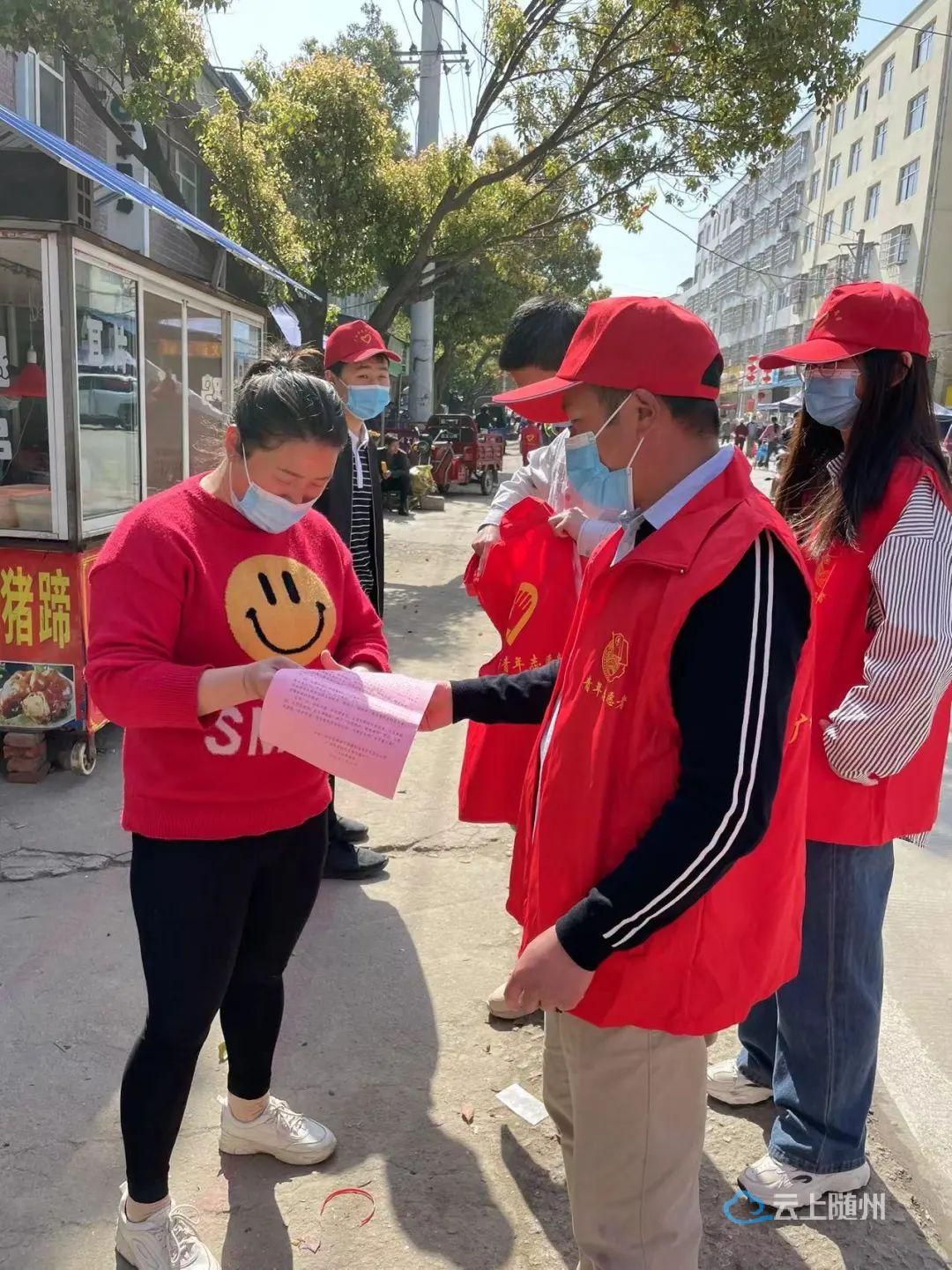 团广水市委组织志愿者在疫情防控卡口开展志愿服务活动。