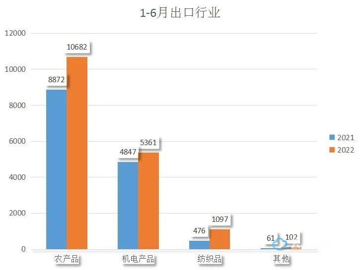 农产品企业14家,出口10682万美元,同比增长20.4%;