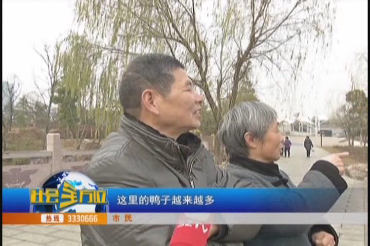 市民:到文化公园来逛,看到这湖面上有野鸭子,为文化公园增添了活力,让人心情很舒畅。