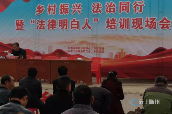 11月18日,随州市司法局联合曾都区司法局在府河镇枣树坳村举办“乡村振兴 法治同行”主题宣传活动暨“法律明白人”现场培训会,掀起了公共法律服务进乡村活动热潮。