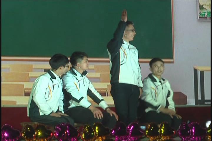 晚会开场,学生们的《美丽中国走起来》给大家带来新年的祝福,教师们也表演了精彩的节目,男声合唱《游击队之歌》,小品《学生时代》迎来了学生们的满堂喝彩。