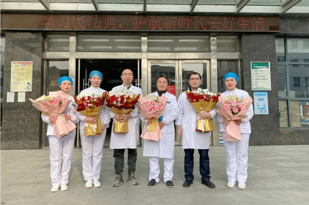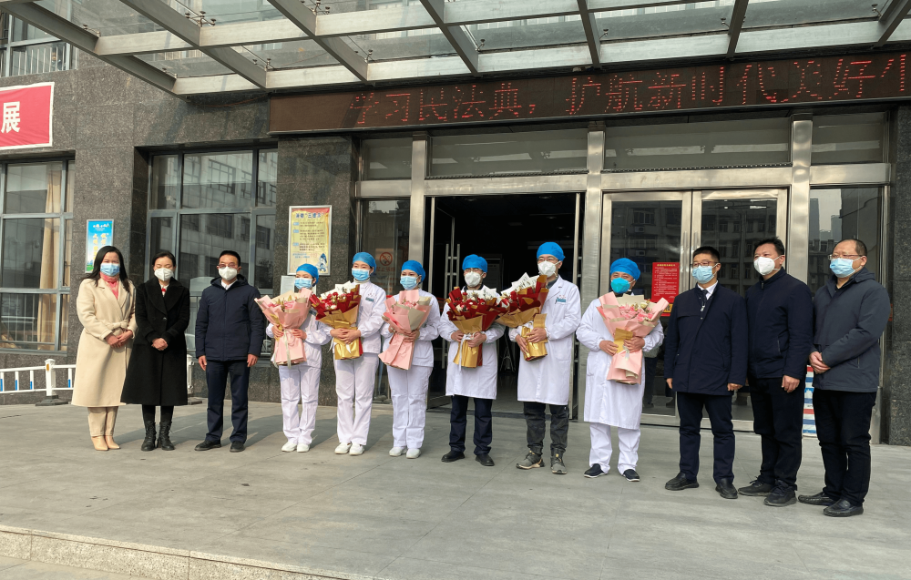 在医院外科楼门前,黄家洲、黄河、周世学等领导为6名医护代表送上了鲜花和慰问金,代表区政府向坚守岗位的医护人员表示诚挚感谢,对他们舍小家、顾大家的辛勤付出和无私奉献表示充分肯定,并向他们致以崇高的敬意和美好祝愿,同时也叮嘱医护人员在保护好人民群众生命安全和身体健康的同时,加强自身安全防护,确保患者安全和自身安全。