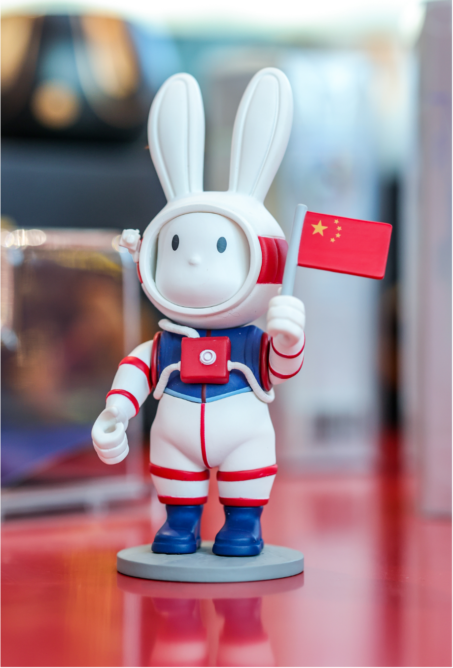 中国探月航天太空兔,是中国航天IP文化的重要符号,代表了新一代的航天精神,集国家工程、硬核科技、潮流文化于一体,既承载着人类对九天揽月的无尽遐想,也肩负着中国航天文化走向大众走向世界的重要使命。