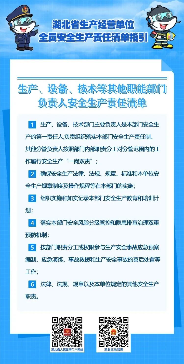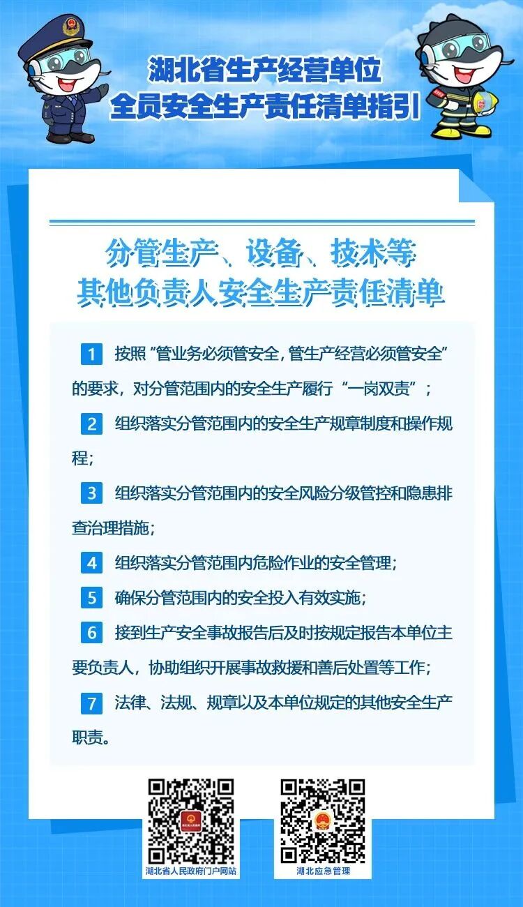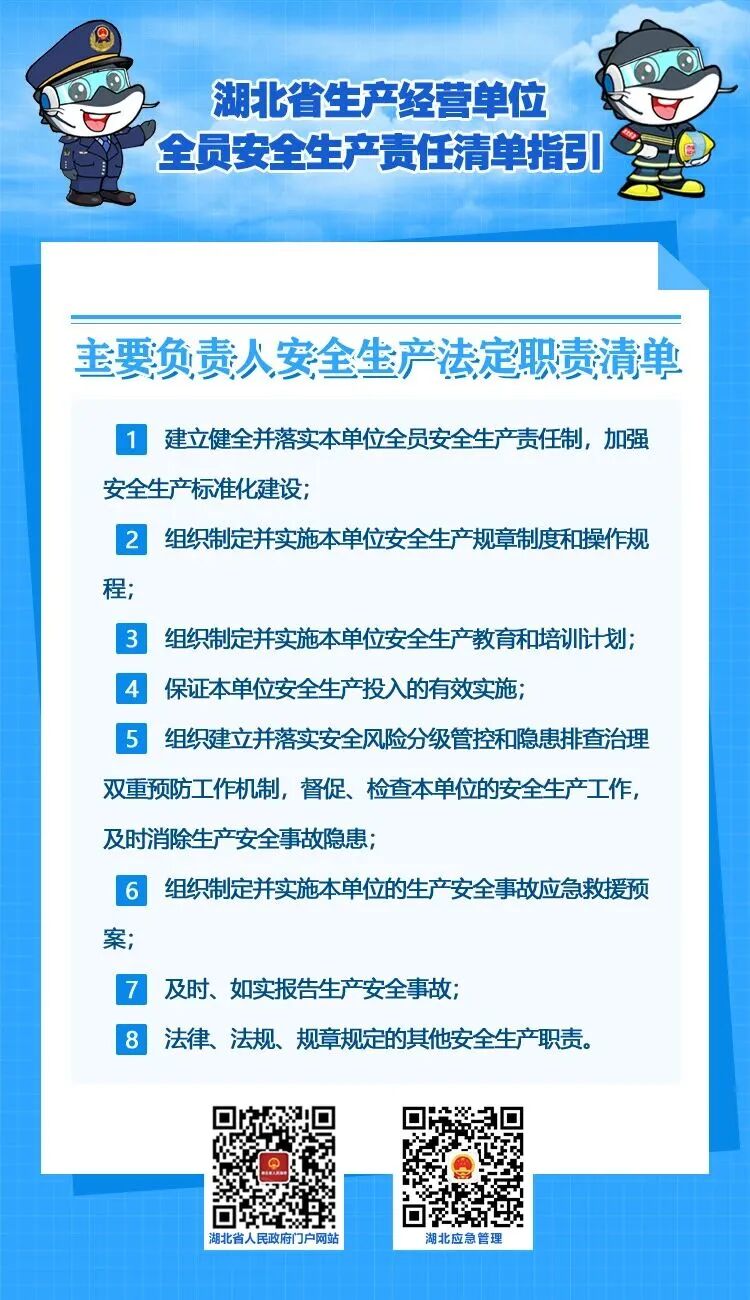 2022年10月21日,湖北省安委办印发《湖北省生产经营单位主要负责人安全生产职责清单指引》和《湖北省生产经营单位全员安全生产责任清单指引》,这是落实企业主体责任,全面加强安全生产监管的具体举措,对推动全省安全生产形势稳定好转,具有重要意义。