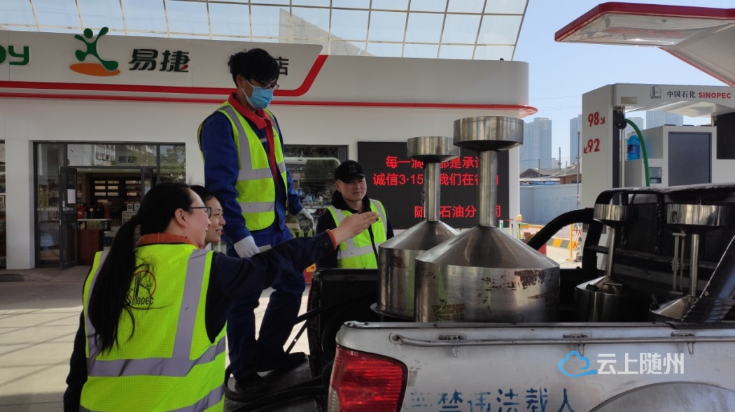 向客户宣讲如何通过观测油品颜色初步判断油品质量的好坏,提醒广大客户,加高品质油品请到中国石化,随州公司始终坚持“每一滴油都是承诺”的社会责任,永远践行“以客户为中心”的服务理念。