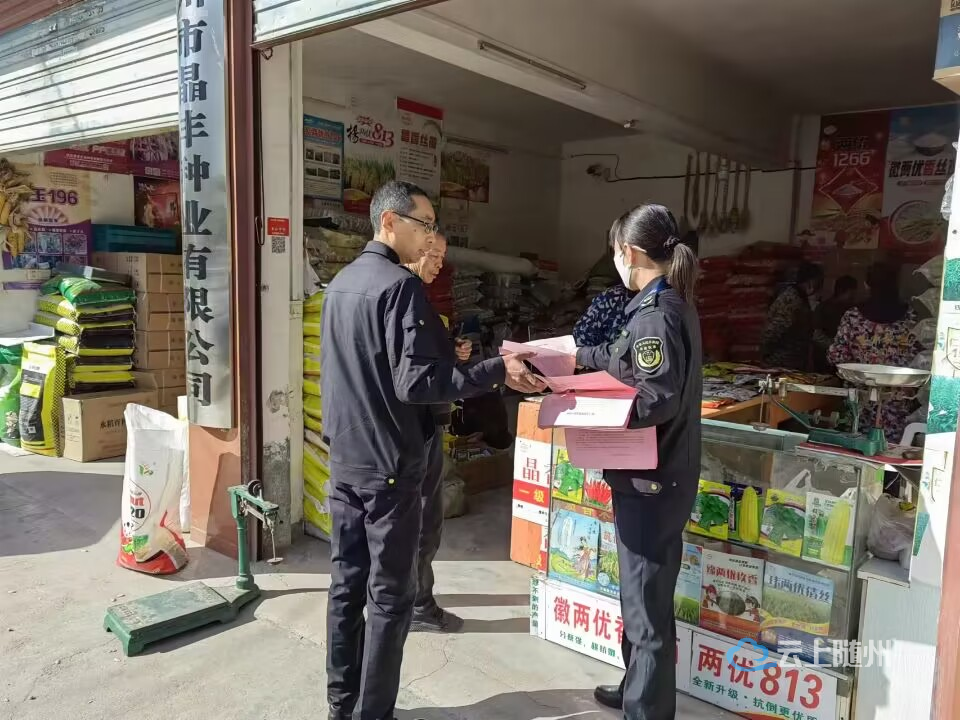 积极做好普法宣传工作。将执法与服务相结合,加大宣传力度,帮助农民了解熟悉农资基本知识,更好地维护自身权益。在检查过程中,检查人员向经营户宣传了《中华人民共和国种子法》《农药管理条例》《肥料登记管理办法》等相关法律法规,详细讲解农资识假辨假、农药定点销售等知识,向前来采购农资的农民群众普及涉农法律法规、农资识假辨假和打假维权知识;鼓励农民对假劣农资线索进行举报,引导农民购买合格农资产品,提高农民自我保护意识、维权意识以及农资经营主体的诚信经营、守法经营意识。