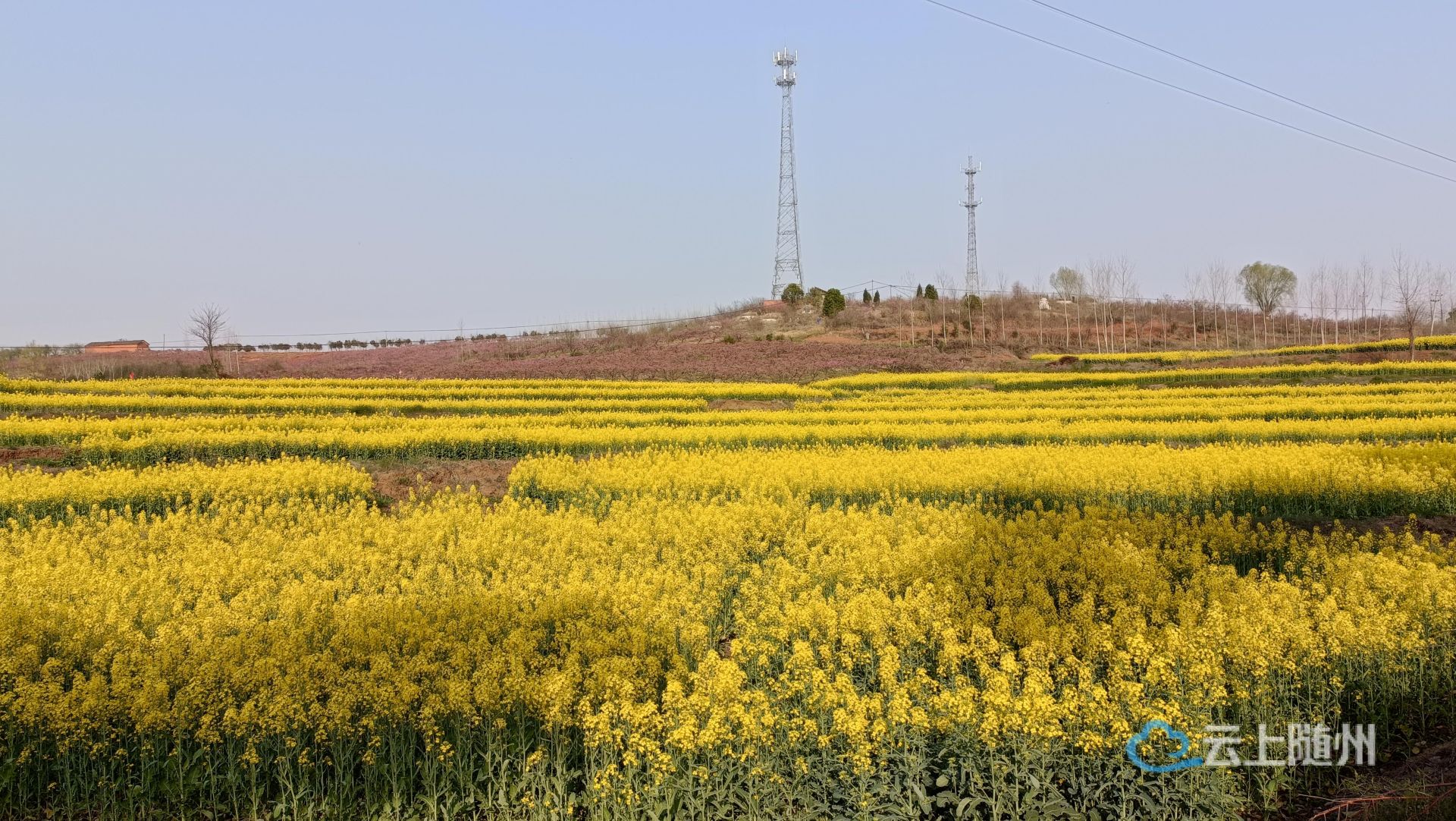 三月中旬以来,随县洪山镇大片金黄的油菜花竞相开放,铺满了整个原野。依托这一壮观景象,当地推出了“如画洪山·油菜花海”春季特色赏花游。洪山镇农技中心主任何建国告诉记者,“2022年秋播,洪山镇通过社会化服务种植油菜面积达到2.1万亩,其中双河核心片区油菜面积3000亩以上。目前正值油菜盛花期,这里正在全力打造“如画洪山 油菜花海”,欢迎大家前来观光、打卡。”
