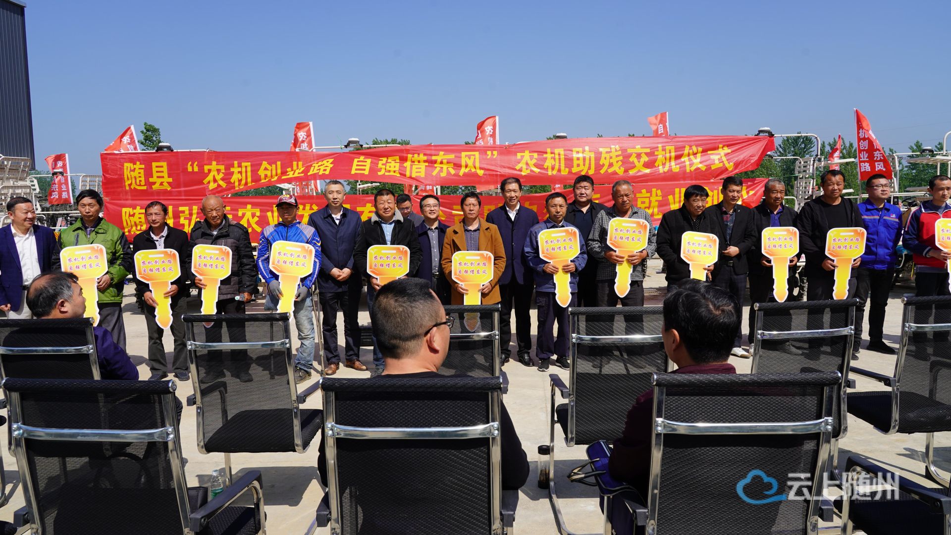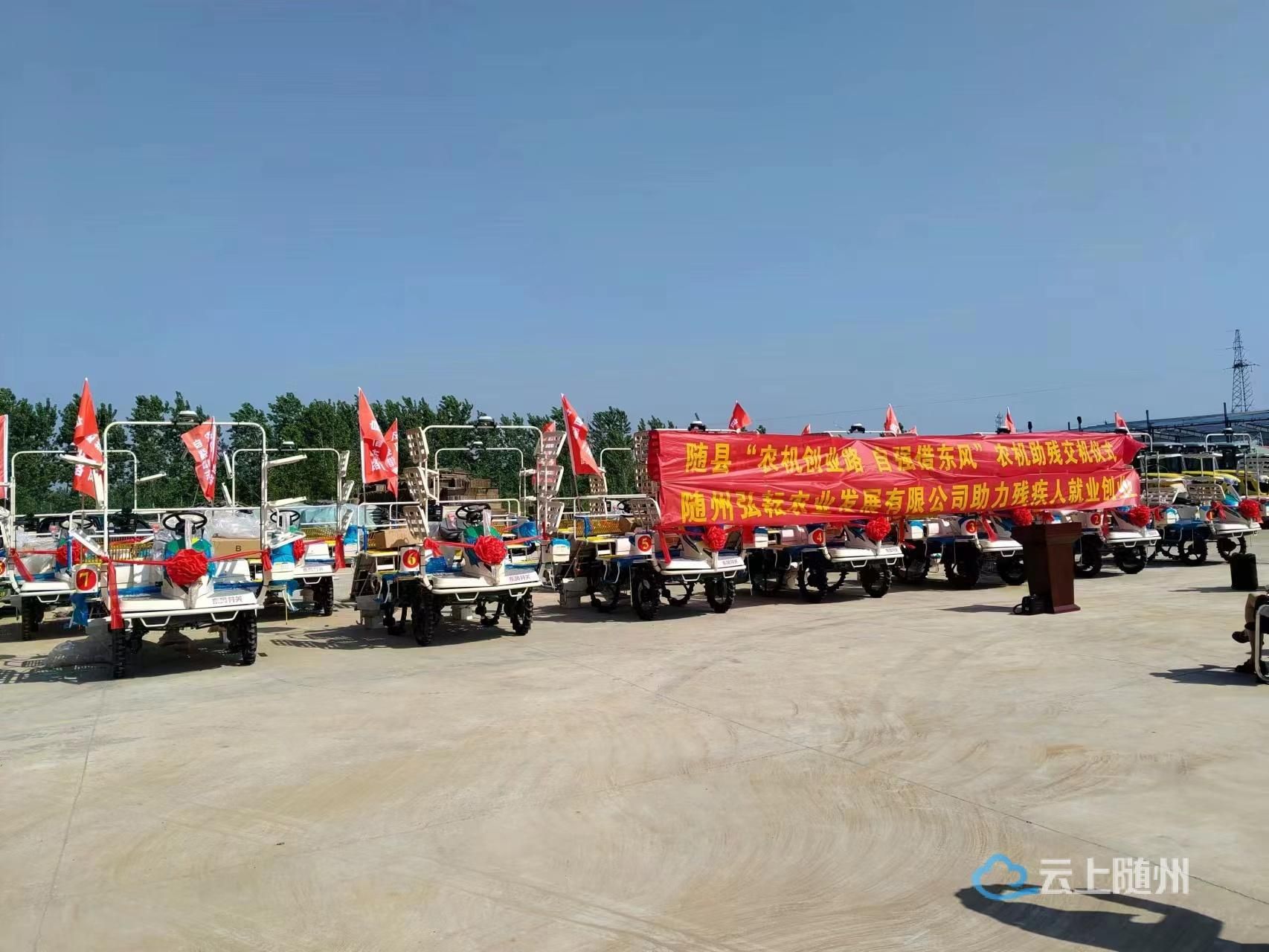 “农机创业路,自强借东风”。4月26日由随县残联、县农业农村局、县乡村振兴局主办的“农机助残”交机仪式在随县弘耘公司举行,15名残疾人朋友零首付购得自动化程度高、操作简便的东风井关插秧机。