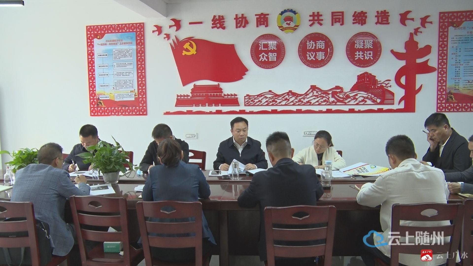 5月10日,广水市委书记杨光胜在应山街道前河社区调研时强调,要始终把人民群众对美好生活的向往作为奋斗目标,切实发挥党建引领优势和基层战斗堡垒作用,运用共同缔造理念,凝心聚力、务实笃行,携手共建幸福和美社区。