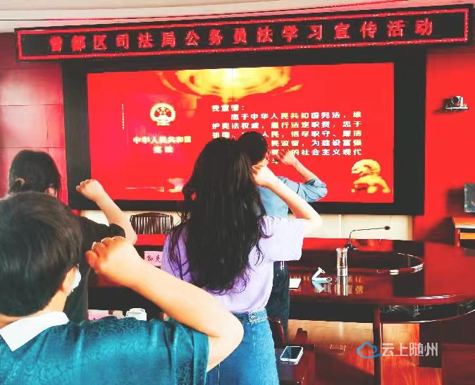 “我宣誓:忠于中华人民共和国宪法……”近日,曾都区司法局组织全系统公务员向宪法宣誓,这是学习宣传贯彻公务员法的一个场景。