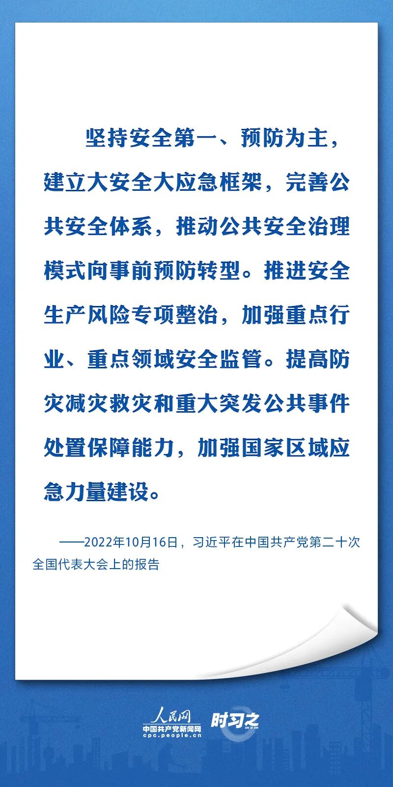 2023年6月是第22个全国“安全生产月”,主题为“人人讲安全、个个会应急”。坚持以人民为中心、树立安全发展理念,习近平总书记多次对安全生产工作发表重要讲话、作出重要批示,在全社会筑牢生命重于泰山的安全观。 来源:人民网