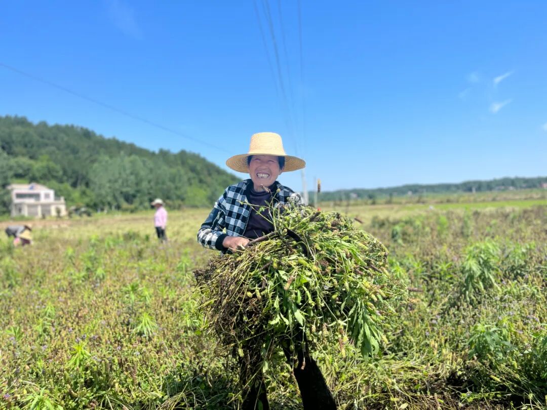 星星点点的紫色映入眼帘,随风起舞的蜂蝶缠绕花间。近日,走进随县均川镇包家巷村,满眼金黄的麦田之间,镶嵌着一方方明艳的绿色。炙热的骄阳下,十余名村民正挥舞着镰刀,细细收割着一尺来高的不知名的农作物,欢声笑语在田野里荡漾。