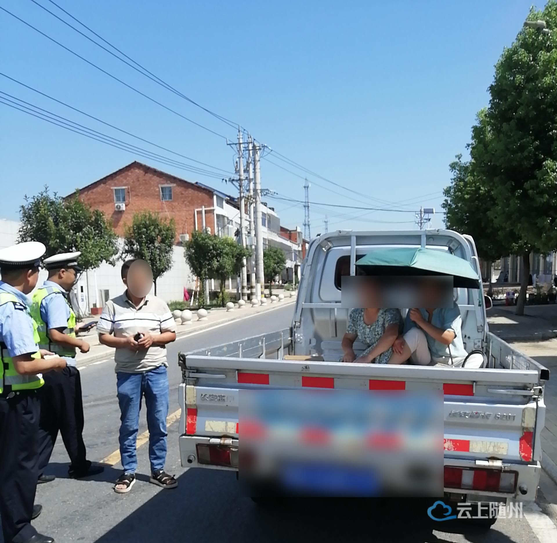 当日10时34分,该大队民辅警在曾都区万店镇淅魏路段执勤点检查时,发现一辆号牌为鄂S***77的轻型货车货厢搭载2人,见此情况,民警立即喊话指挥车辆靠边停车接受检查。